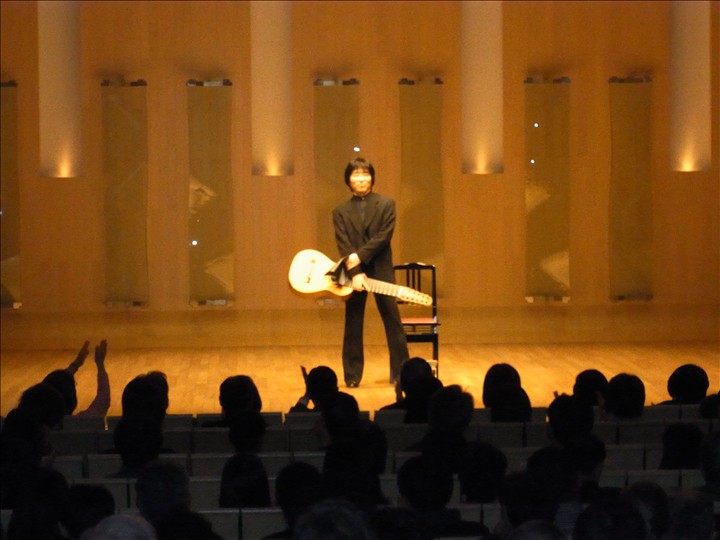 緊張感の張り詰めた空間の中で、第一部一曲目のバッハのプレリュードNo.3のアルペジオが静かに流れる。すると、まるで魔法かけられたように一気に演奏の中に引き込まれていく。ダイナミックな演奏と一本一本綿密にはじかれた繊細な音色とが相まって、岩永の大きな音楽が渦となって観客を音楽の世界に誘う。