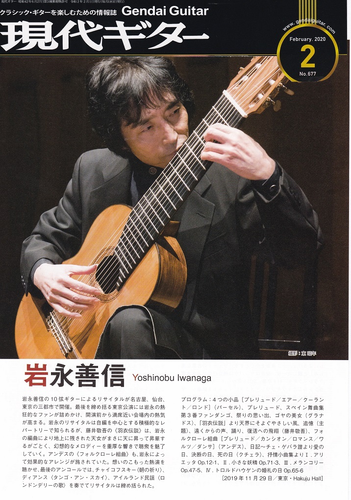 | ロンドンタイムズ紙 | 日本人ギタリストの岩永善信は恐るべきテクニックの所有者である。彼の左手は指盤の上を優雅に飛び回り、音楽的にも技術的にも円熟した彼にとって全てのリスクは無縁である。 |